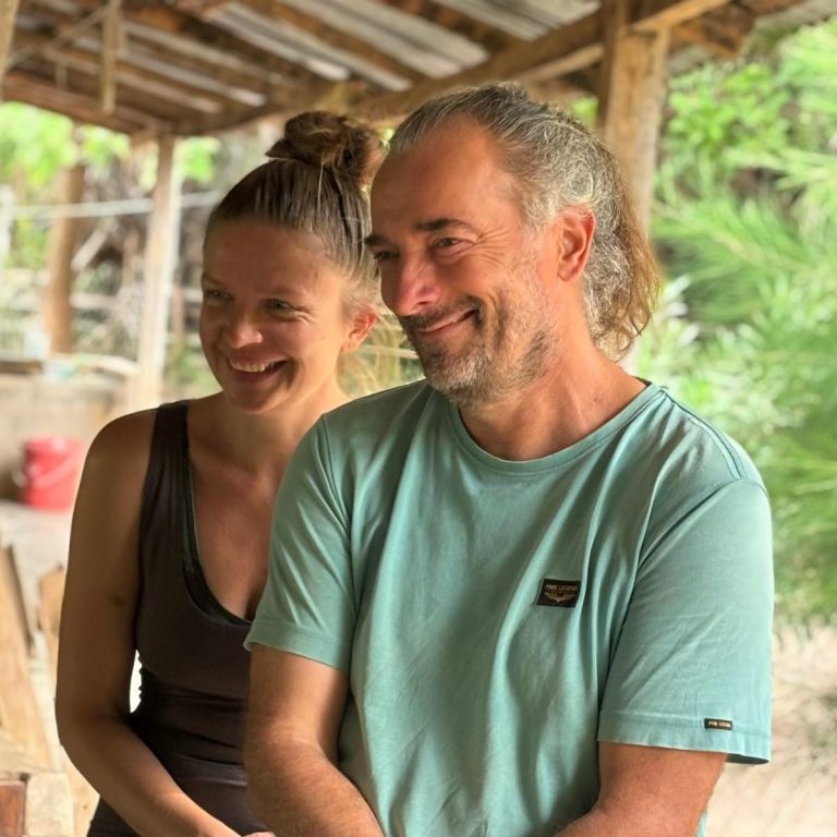 Het nomadische leven leerde ons de waarde van eenvoud en innerlijke rijkdom. Nu bouwen we met liefde verder aan deze bijzondere plek. Marieke brengt haar passie voor kunst en yoga in; Johan verbindt met zijn rust en aanwezigheid.